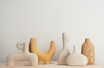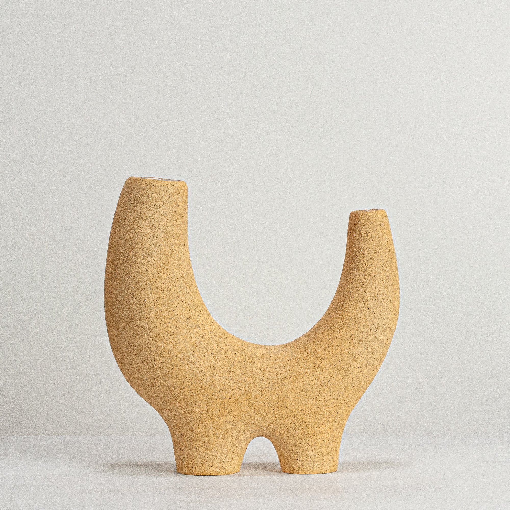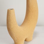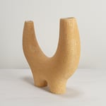 Stoneware sculptural vessel with lining glaze and a warm stoney finish. Suitable for use as a vase.