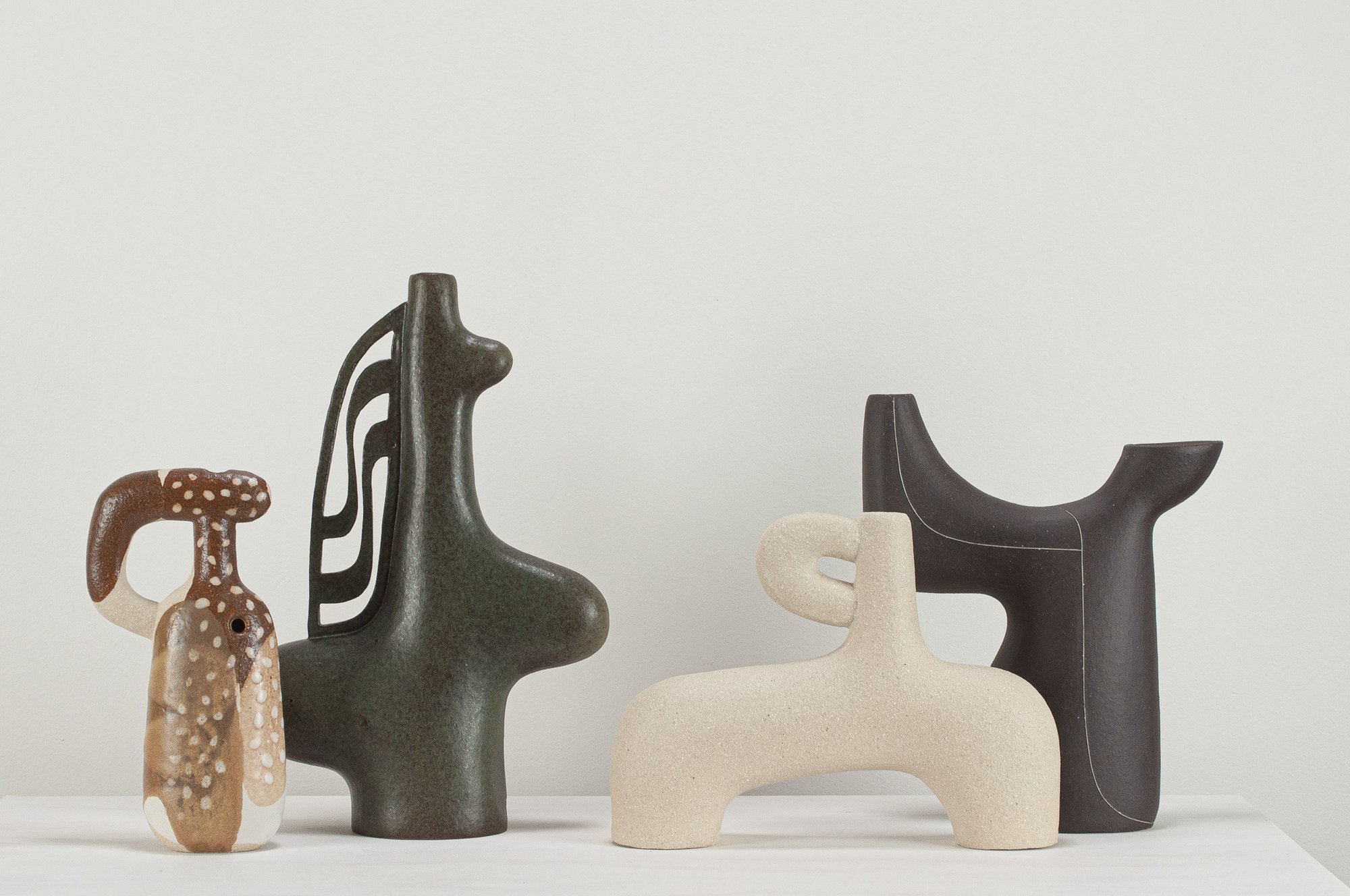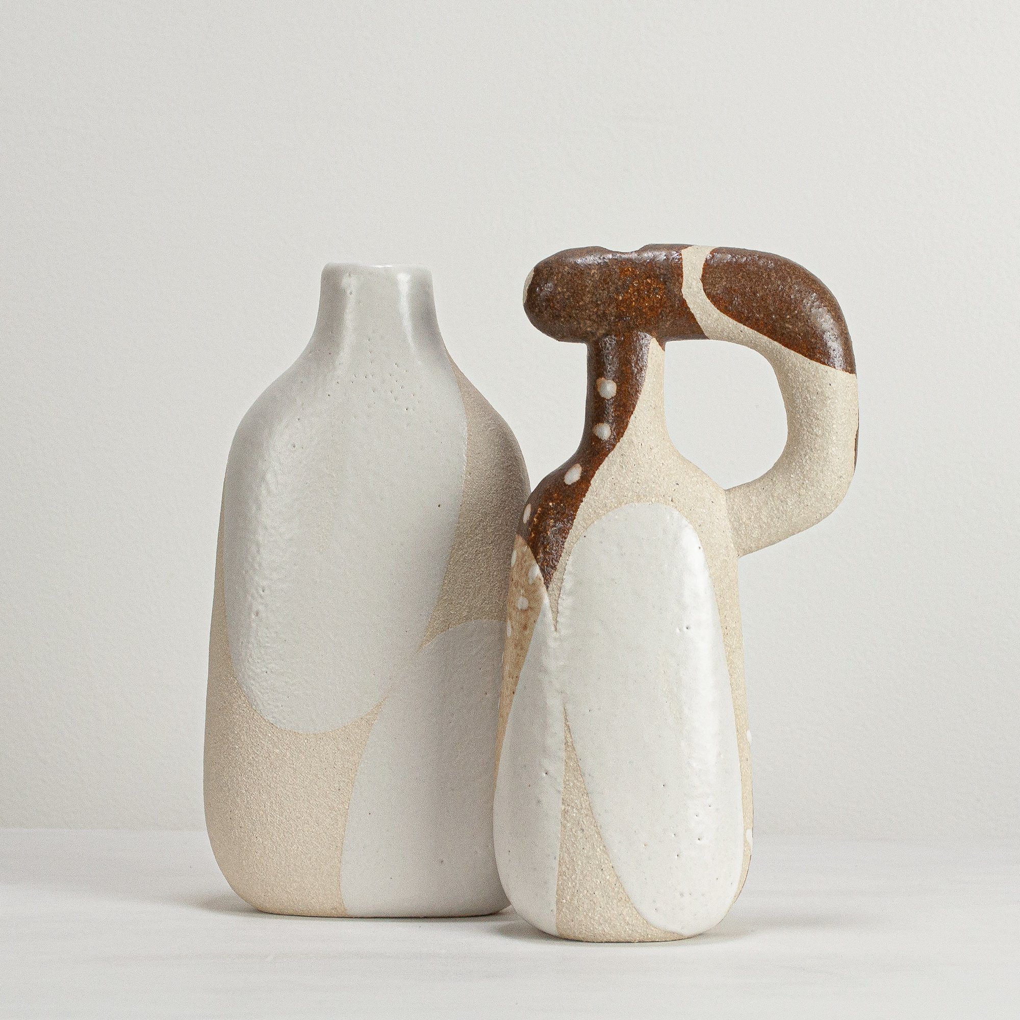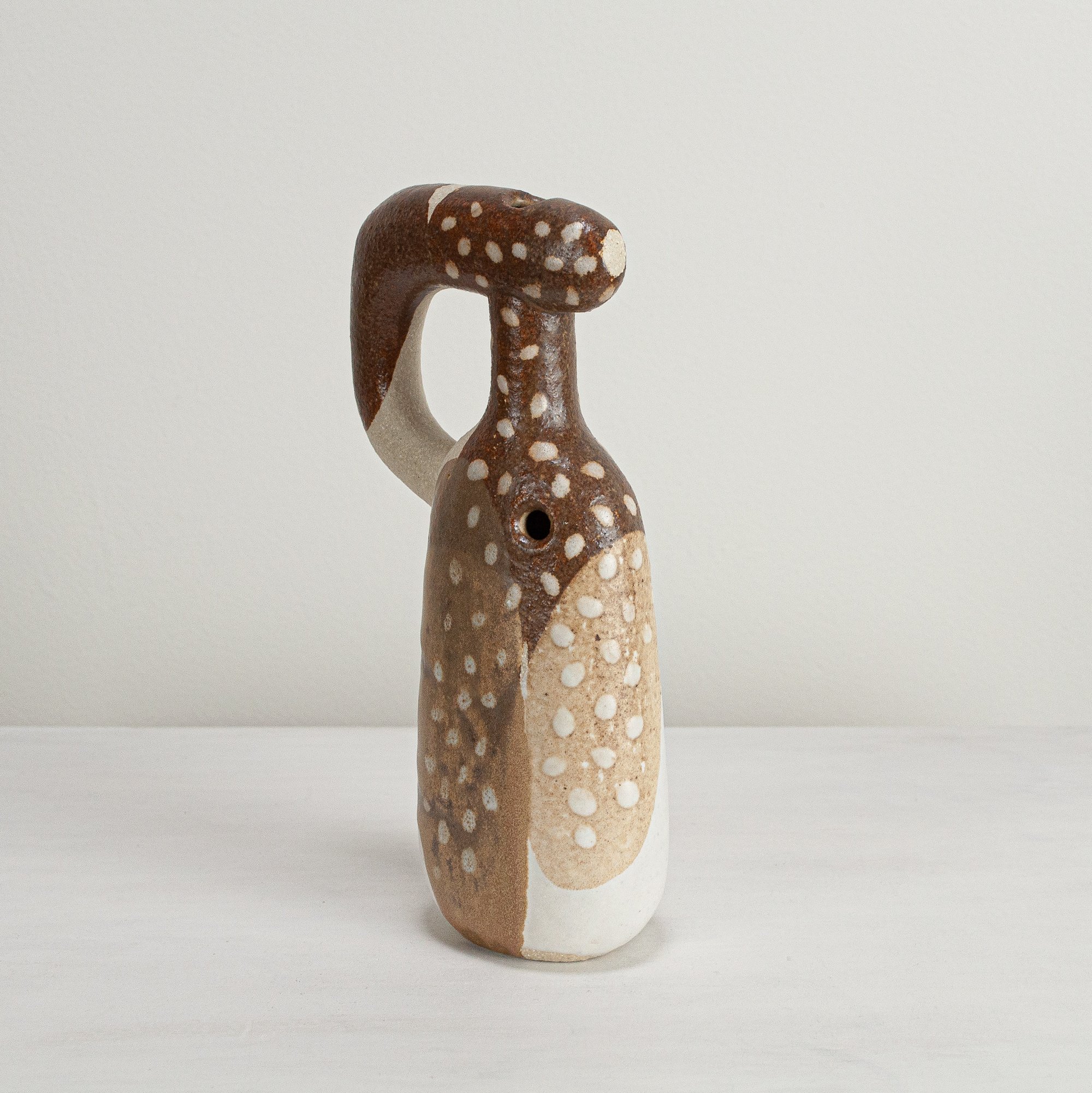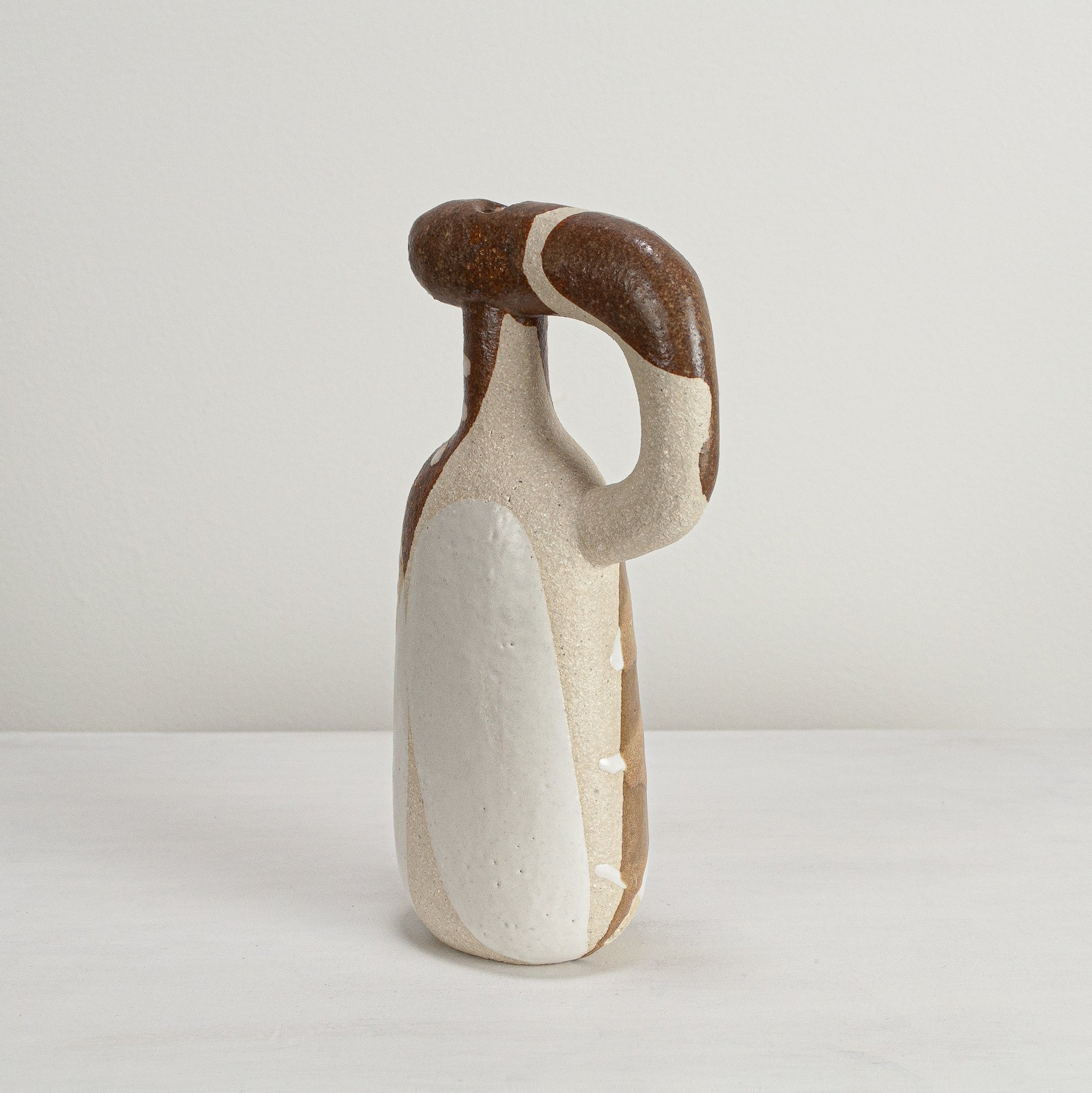 Stoneware sculptural vessel in multi layered, satin matt glazes. Suitable for use as a vase.