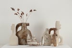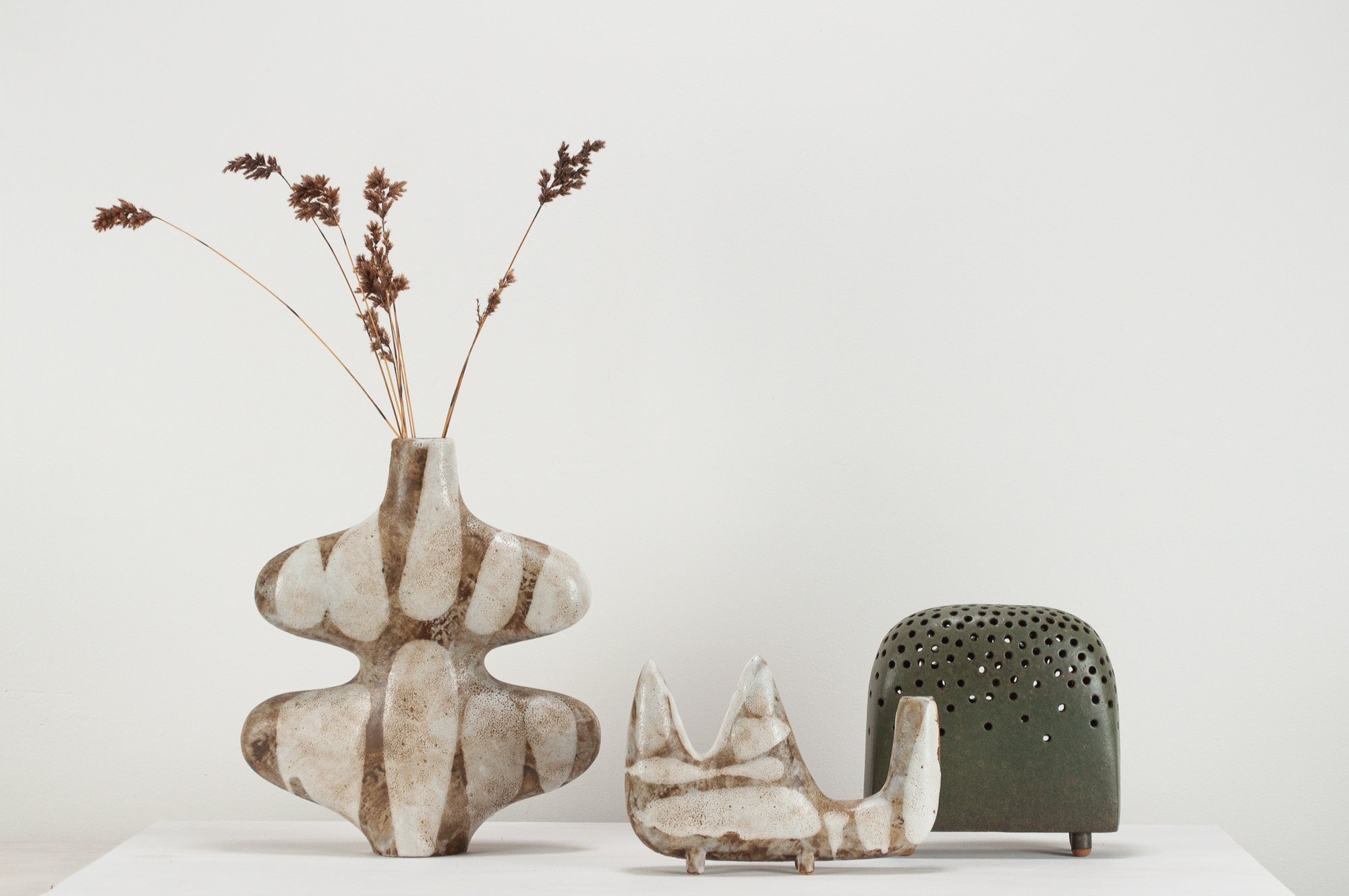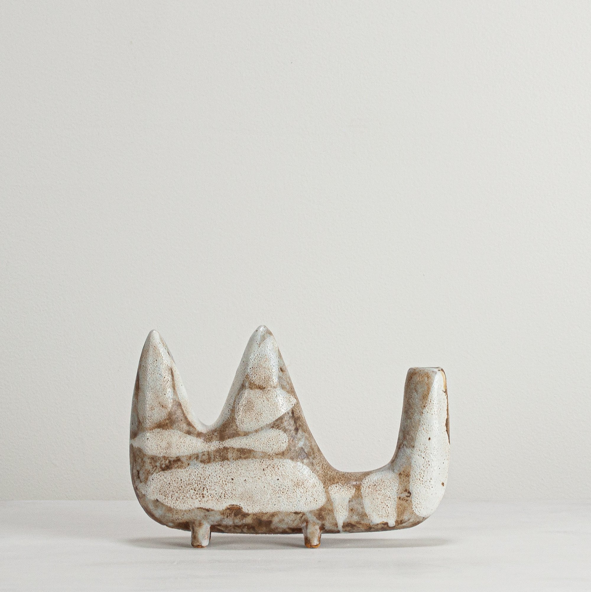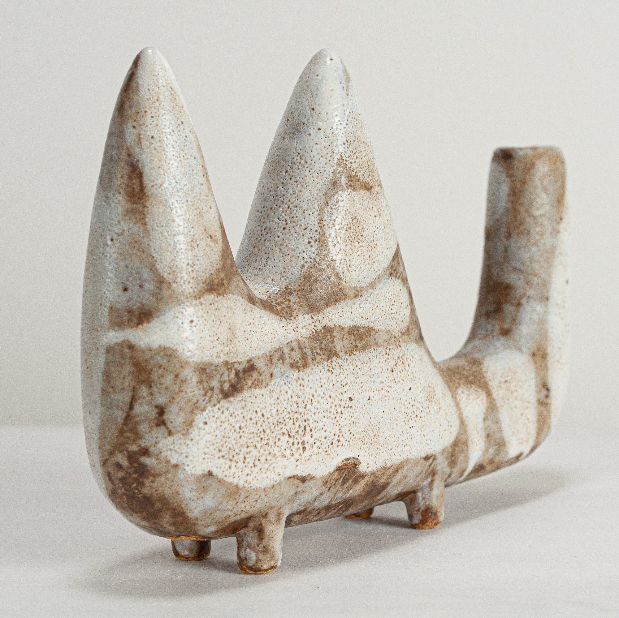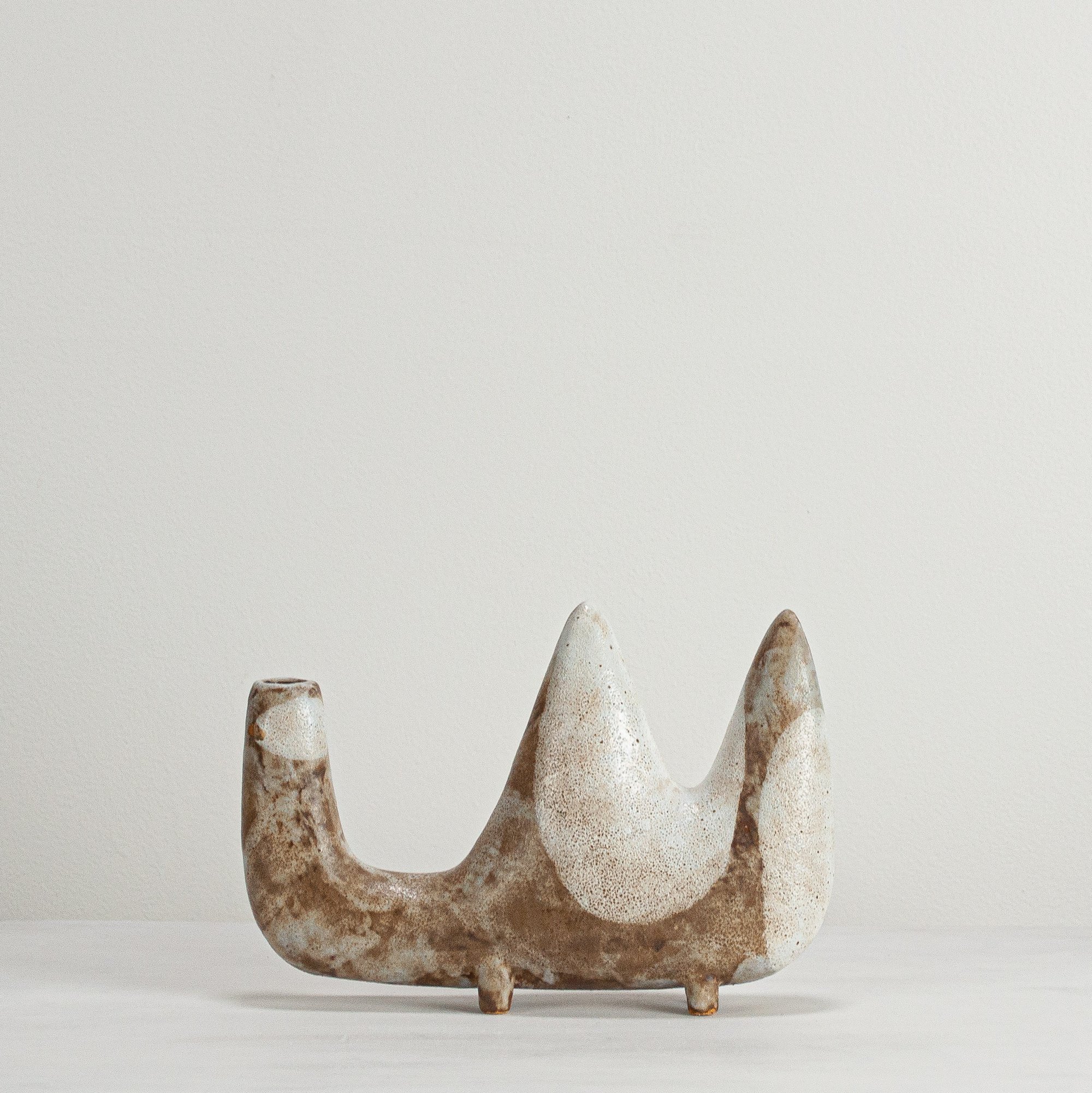 Stoneware sculptural vessel in multi layered, satin matt glazes. Suitable for use as a vase.