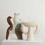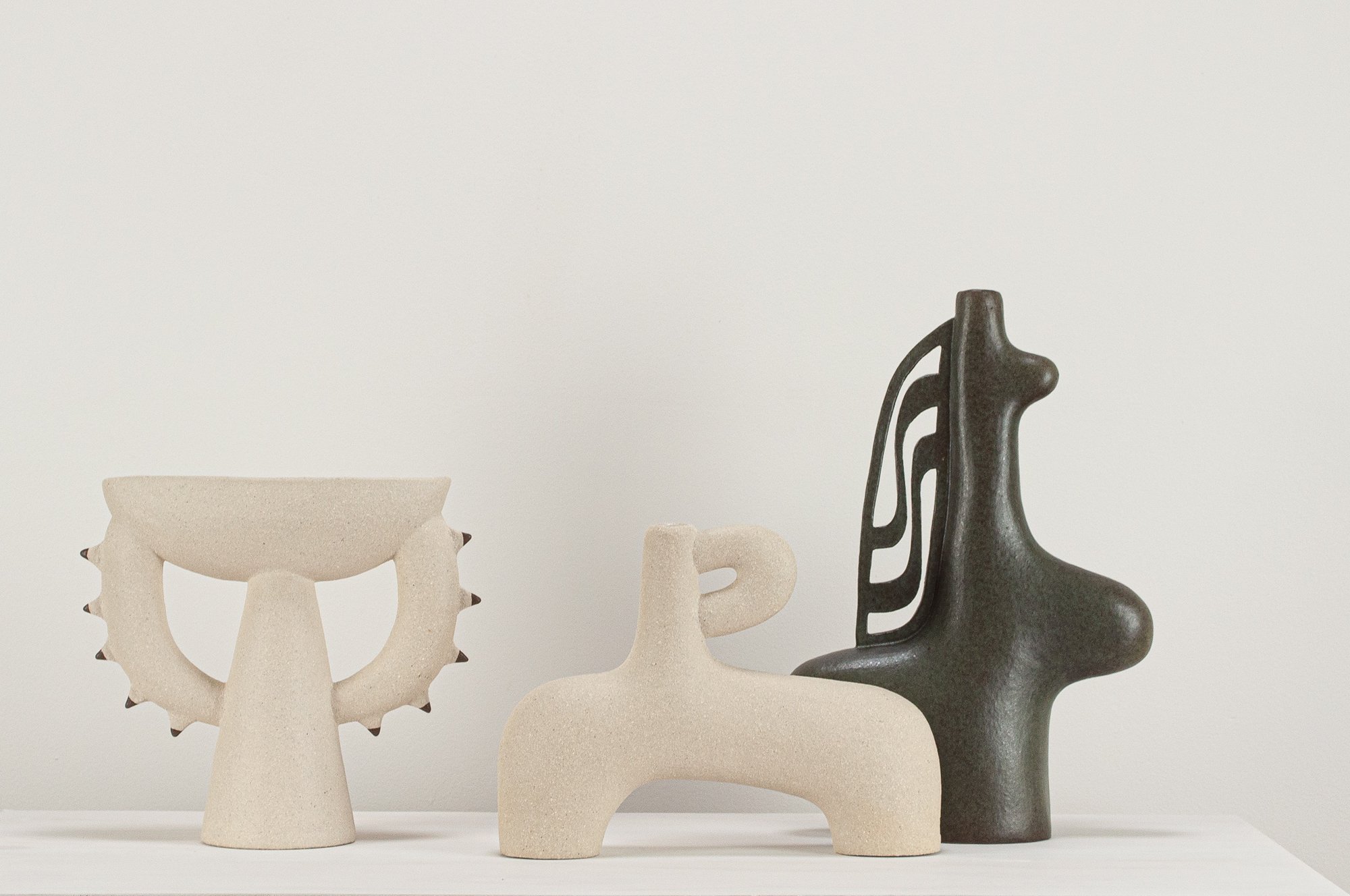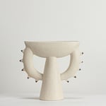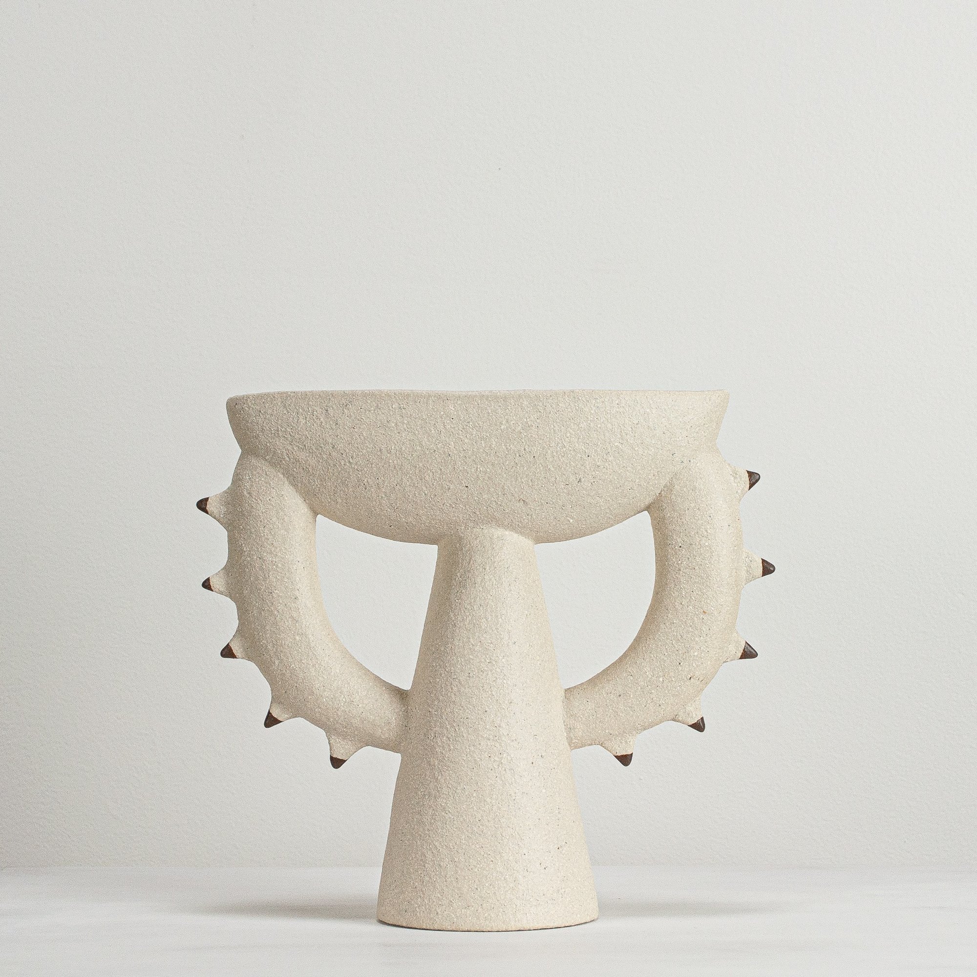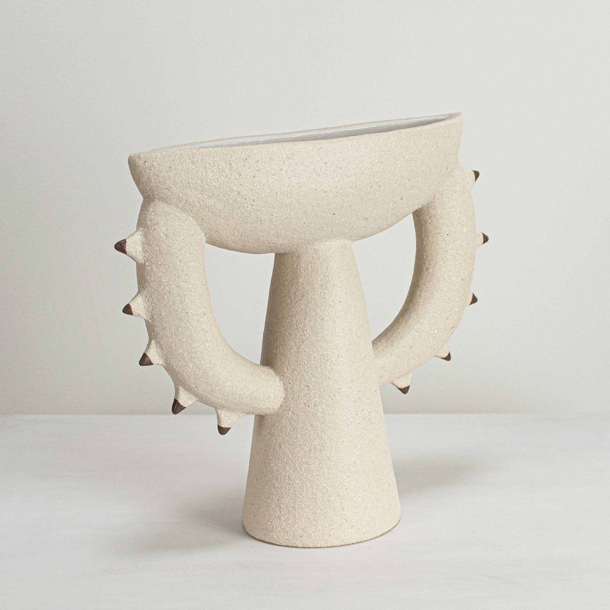 Stoneware sculptural vessel in a warm white, stoney finish. Suitable for use as a vase.
