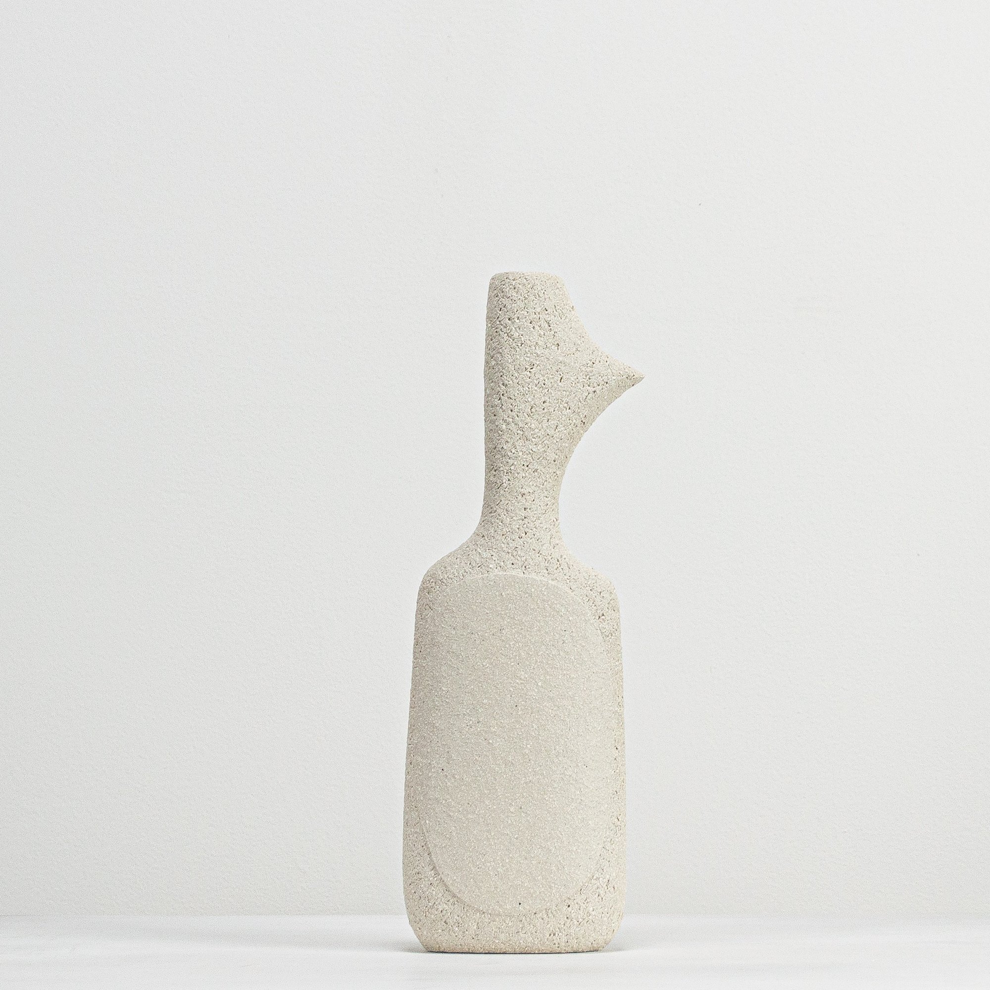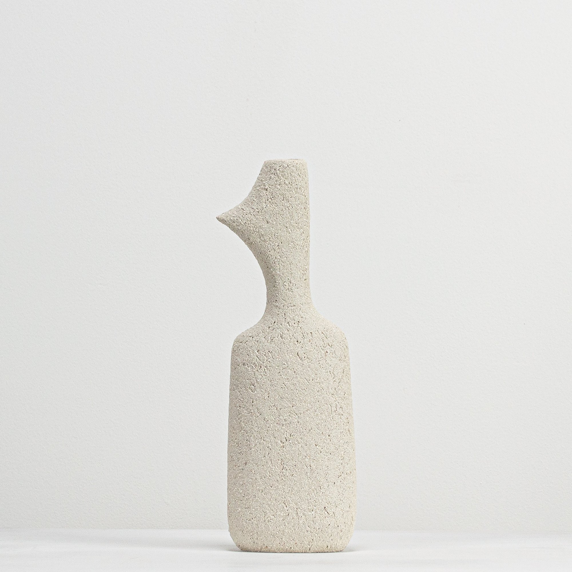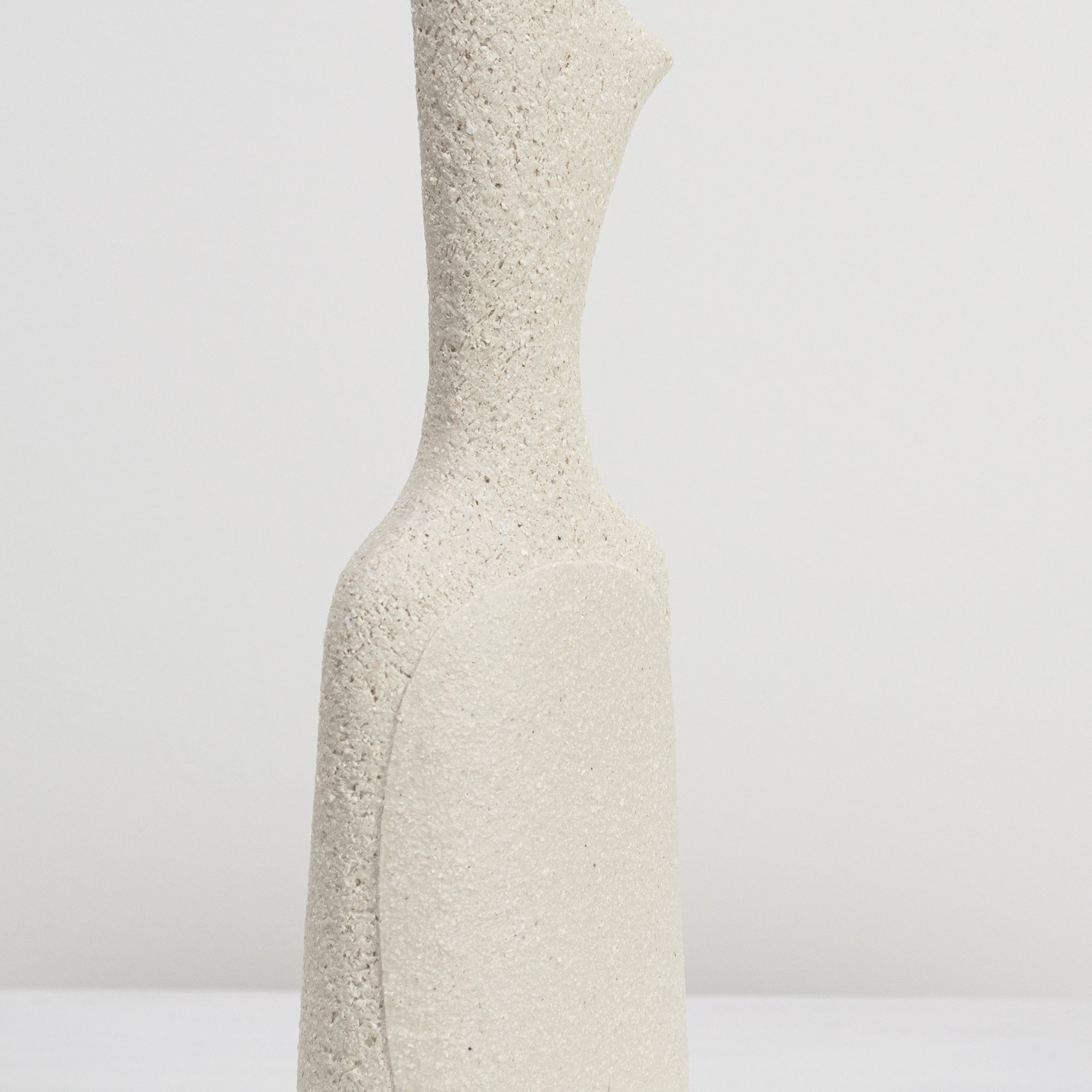 Unglazed stoneware sculptural vessel with a warm white, stoney finish. Sculptural vessel, suitable as a vase.