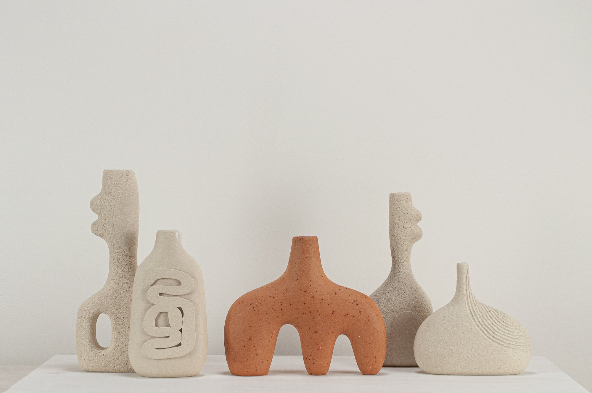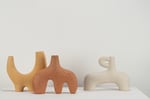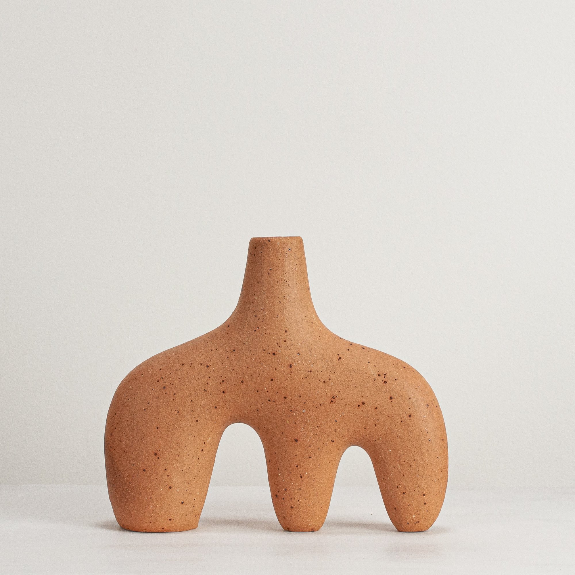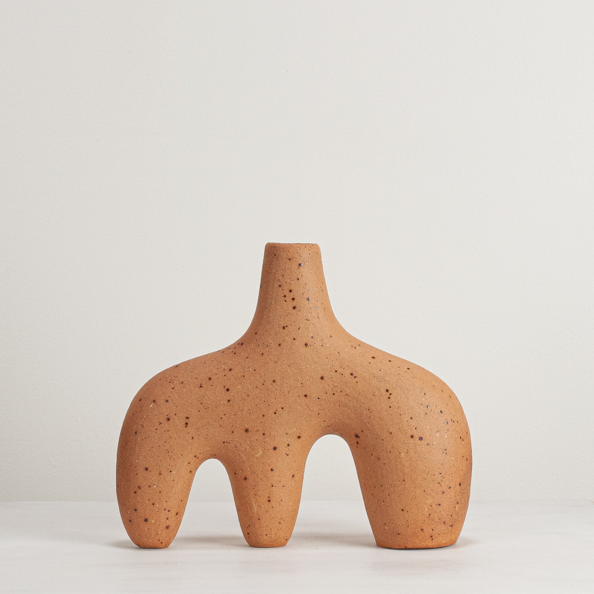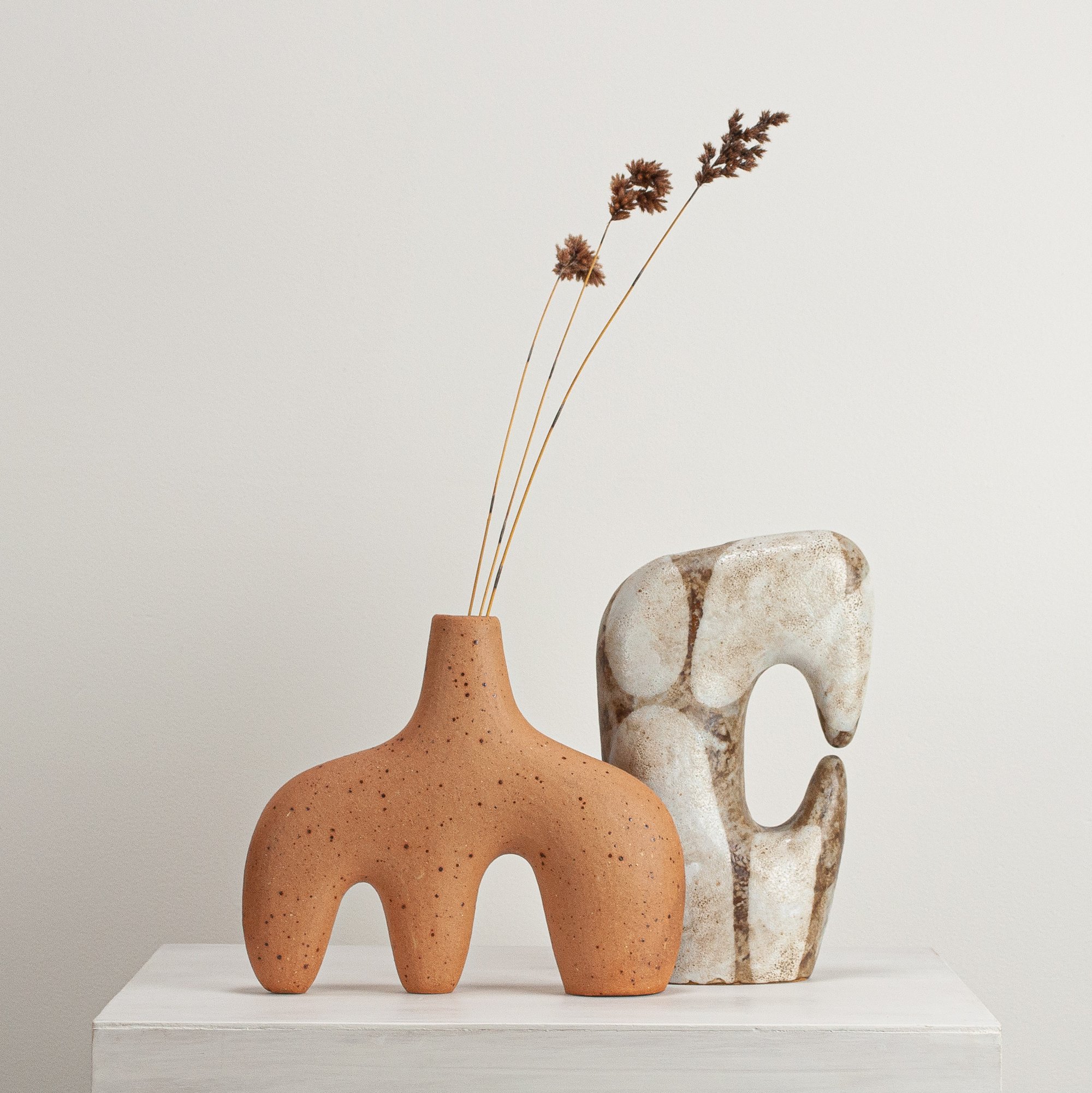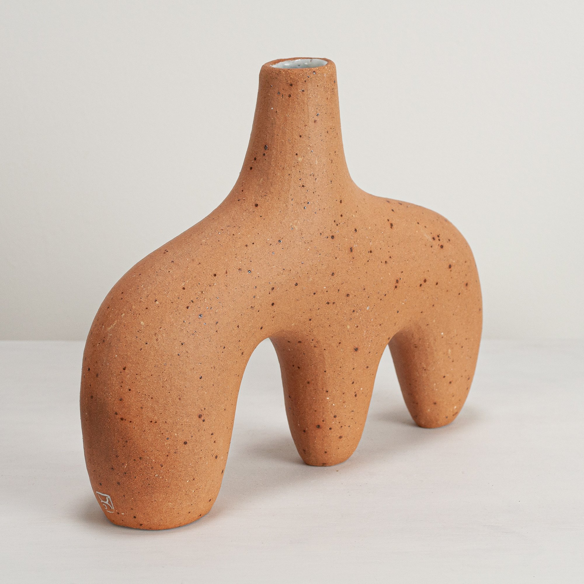 Stoneware sculptural vessel with lining glaze and a warm stoney finish. Suitable for use as a vase.